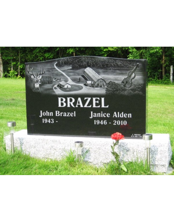 This funerary monument is offered to you in a magnificent black color, the engraving with a chisel here represents a farm with some elements unique to the missing person. This monument is polished on the whole to offer you a most striking contrast.