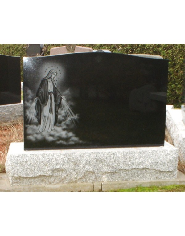 African black granite monument with a sumptuous engraving of the Virgin Mary.