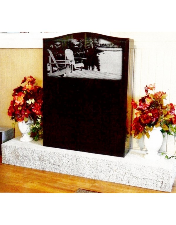 Black granite monument representing the calm and serenity of a perfect day by the water.
