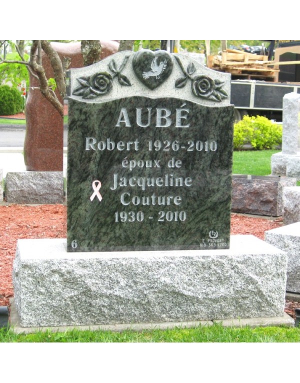 Magnificent monument of green color featuring a beautiful wreath of polished finish.