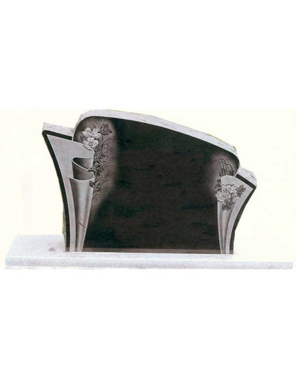 This funerary monument with contemporary shapes in the highest quality black granite, offers you magnificent images of flowers engraved by hand by an artist. This funerary monument is polished on the surface and rustic on the sides.
