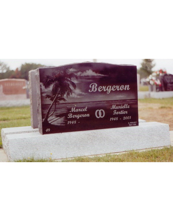 This funerary monument is presented to you in black granite and displays a magnificent seaside landscape, its engraving by hand made with a chisel is so realistic that it is as if you were there. This monument is polished on the front surface, its back is sawn and its sides are rustic. A magnificent piece of granite.