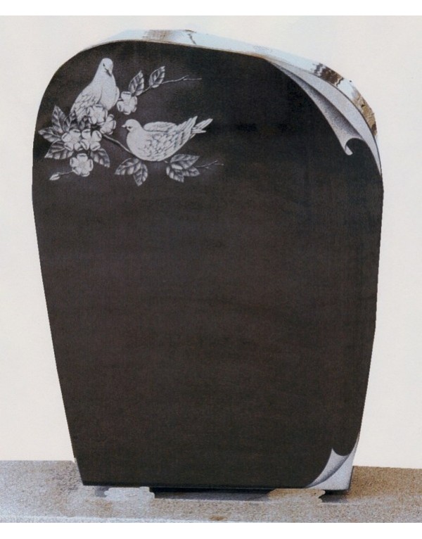 This magnificent funerary monument in black color with an oval shape, polished on the whole, has a magnificent hand engraving representing beautiful doves among light foliage.