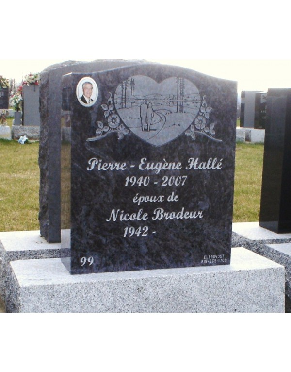 In 1 granite of a distinctive and unique color, this funerary monument is distinguished by the sobriety of its outline and by the elegance of its drawing and engraving. To personalize a little more, what could be better than the photo of your loved one on 1 high quality porcelain, guaranteed for life against fading.